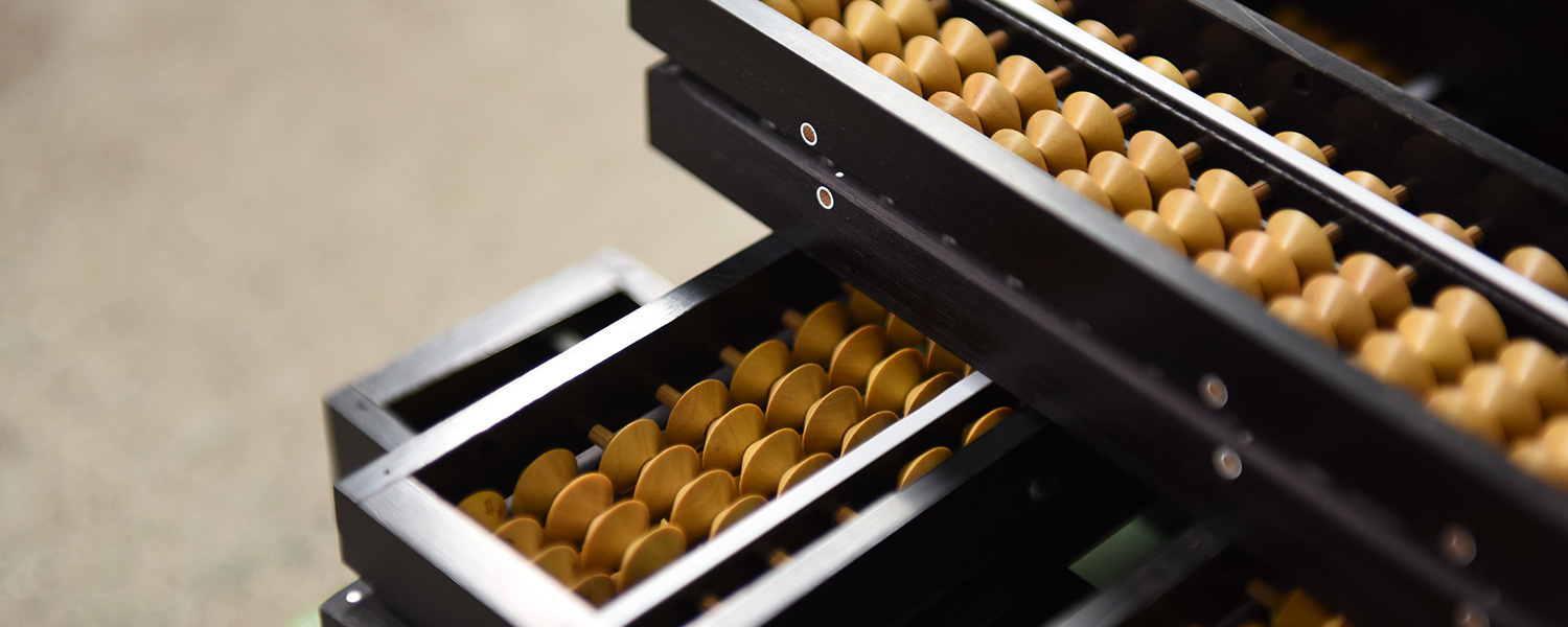 播州算盤とは そろばんは室町時代の終り頃、中国から長崎を経由して大津に伝わりました。安土桃山時代に、豊臣秀吉の三木城攻略時に、大津に逃れた住民が、そろばんの技法を習得し、地元に帰って製造を始めたのが播州そろばんの始まりと言われています。昭和35年には360万丁と最も多く生産されましたが、その後電卓の出現によって、計算機としての需要は減少しましたが、学習道具としてのそろばんでより多くの人の手にとってもらえるよう日々作り続けています。またそろばんの技術を生かした商品開発も行なっています。