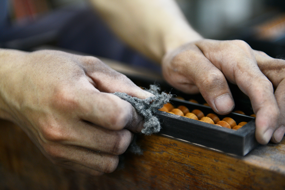 | そろばんは室町時代の終り頃、中国から長崎を経由して大津に伝わりました。安土桃山時代に、豊臣秀吉の三木城攻略時に、大津に逃れた住民が、そろばんの技法を習得し、地元に帰って製造を始めたのが播州そろばんの始まりと言われています。昭和35年には360万丁と最も多く生産されましたが、その後電卓の出現によって、その需要は減少しています。 |